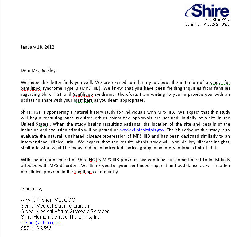 This is THE FIRST time ALL TYPES of Sanfilippo will be participating in this type of study!!! This is so exciting for our community. If this proves successful, this is also not an age or regression restricted type of treatment. This is what we ALL could use as A TEAM!!! If you would like to speak to anyone about this, you can contact Kathy Buckley (President) at 518-879-6571, Patty Taormino (VP) 410-227-5711, and Danielle O’Connor (Treasurer and fundraising) 330-354-6401