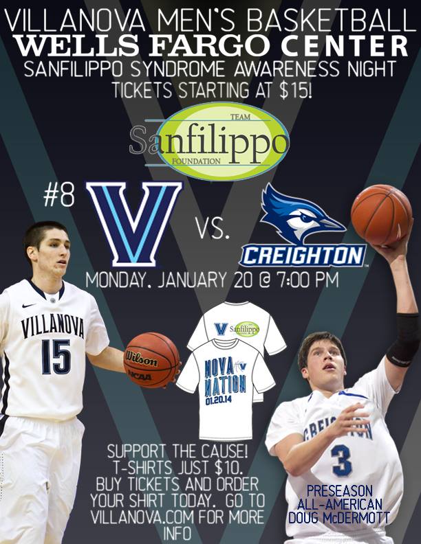 January 20, 2014 – Villanova Teaming Up to Raise Awareness for Sanfilippo Syndrome at Jan. 20 Men’s Basketball Game