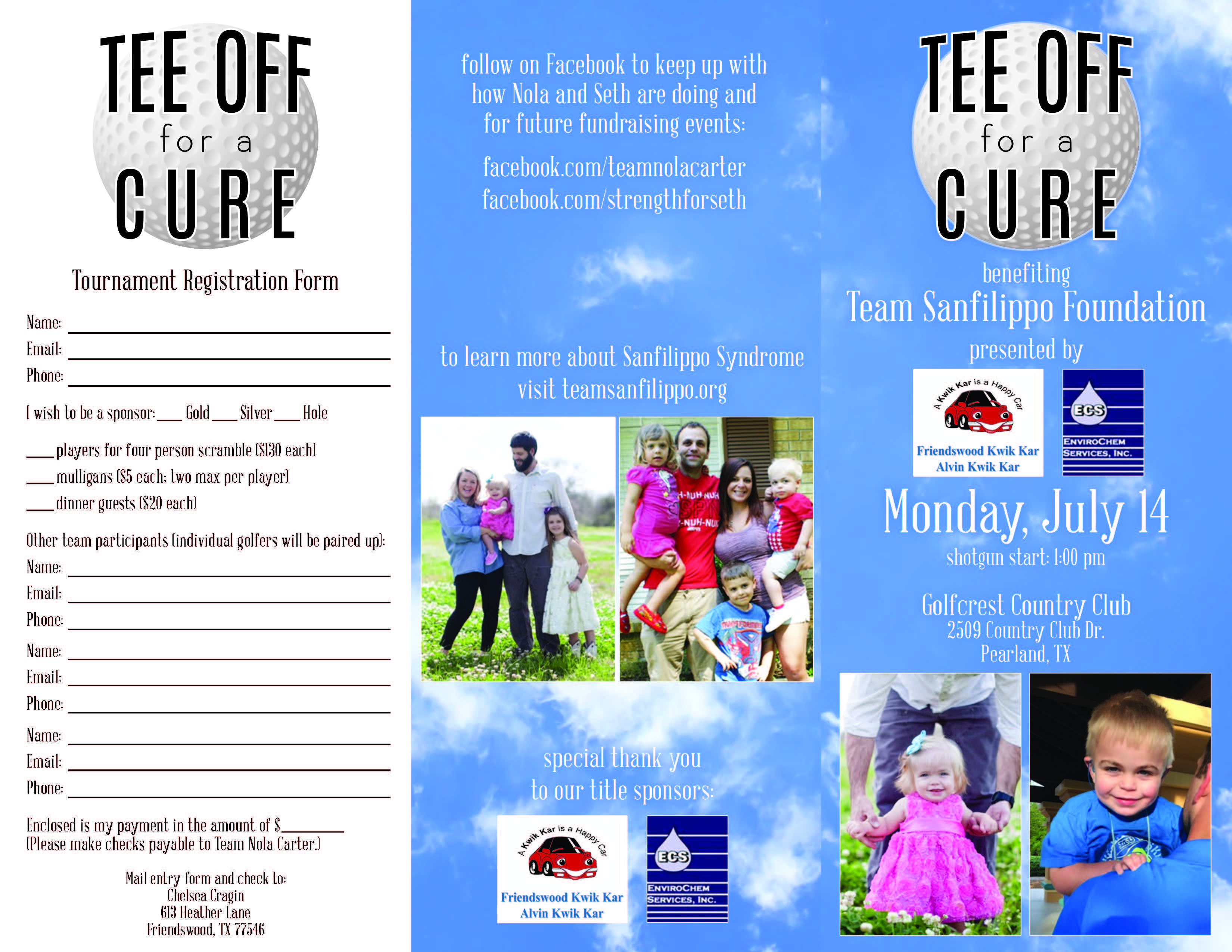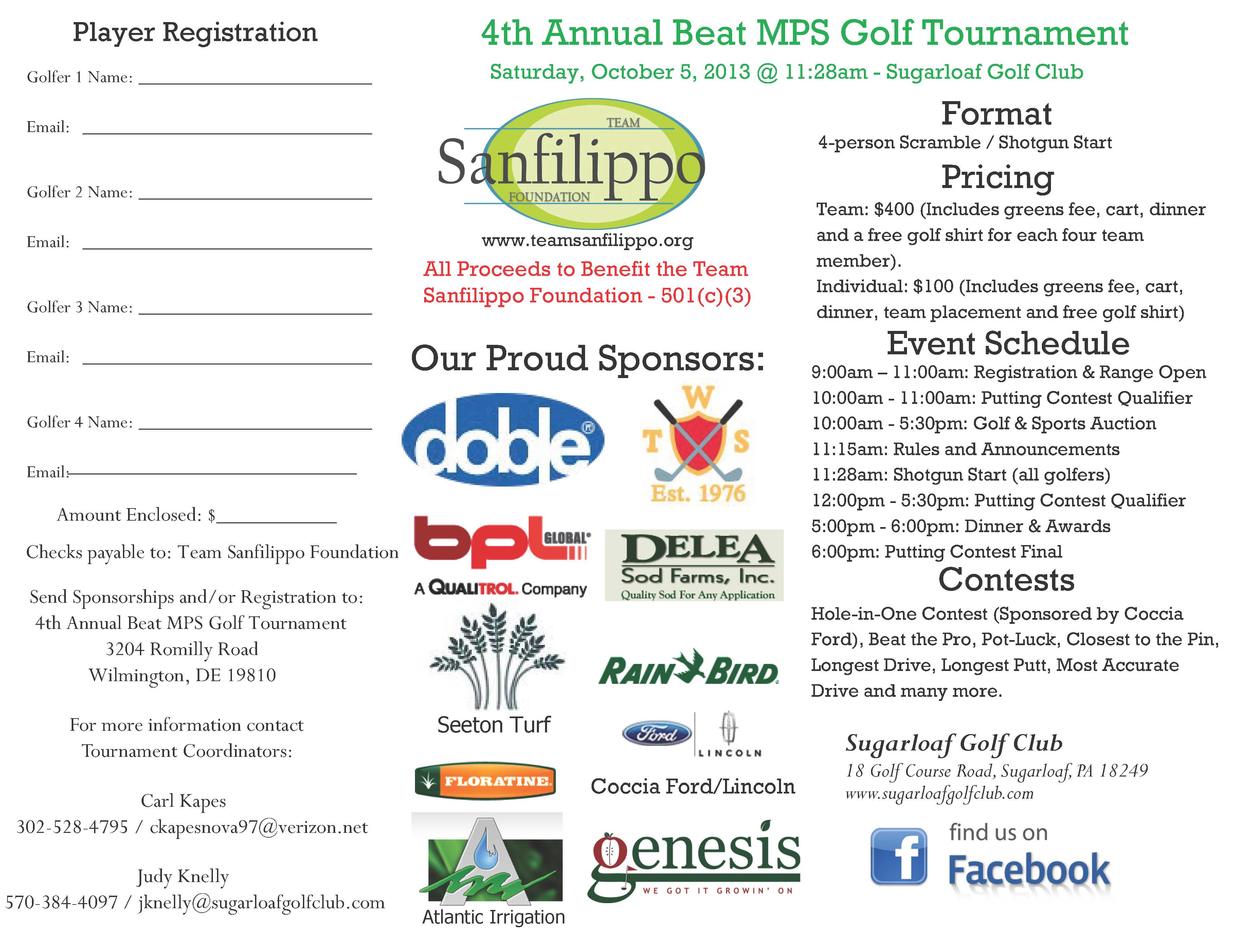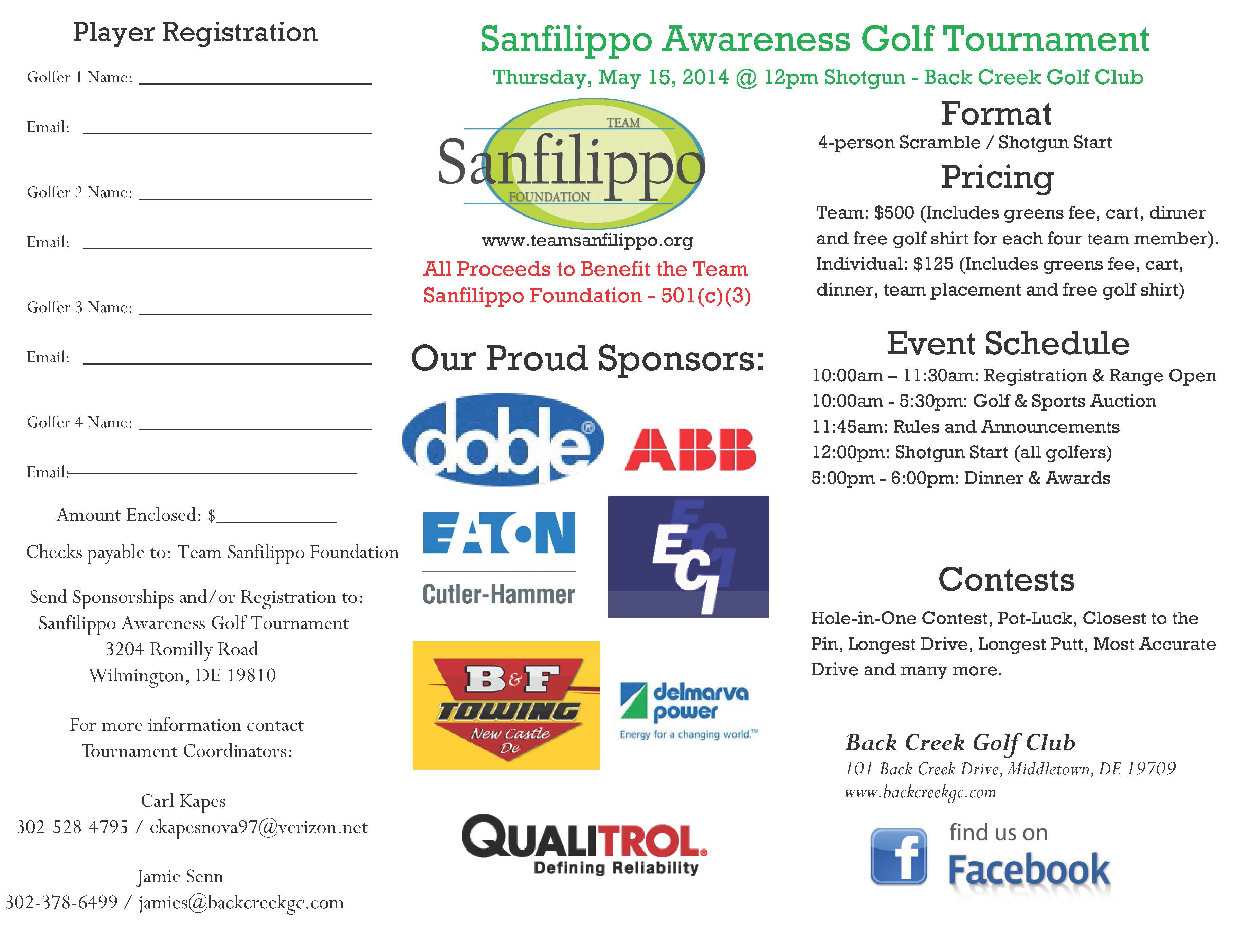 Make Checks Payable to Team Sanfilippo Foundation and mail to: Team Sanfilippo Golf Scramble, 3204 Romilly Road, Wilmington, DE 19810